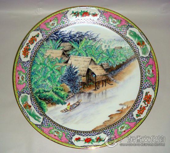 廣彩瓷燒制技藝是廣州地區釉上彩瓷藝術的簡稱,指廣州燒制的織金彩瓷及其采用的低溫釉上彩裝飾技法,亦稱“廣東彩”、“廣州織金彩瓷”,以構圖緊密、色彩濃艷、金碧輝煌為特色。廣彩瓷燒制技藝在清乾隆年間形成獨特的藝術風格,至今已有300多年歷史。民國時期劉子芬《竹園陶說》記載稱:“清代中葉,海舶云集,商務聚盛,歐土重華瓷,我國商人投其所好,乃于景德鎮燒造白瓷,運至粵垣,加雇工匠,依照西洋畫法,加以彩繪,于珠江之河南,開爐烘染,制成彩瓷然后售之西商。”